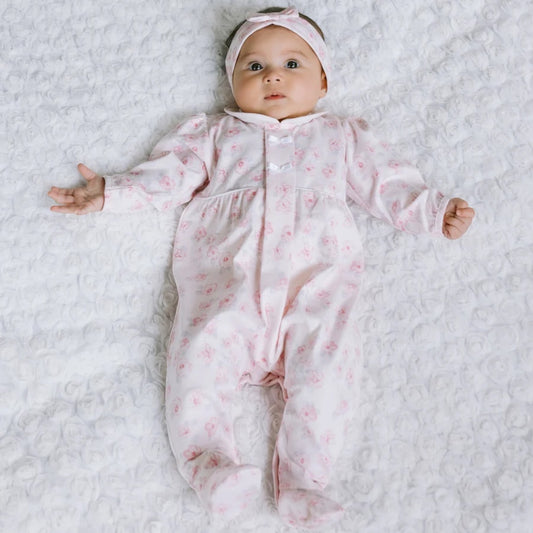 Emile et Rose - Pink all in one with all over floral print, with matching headband