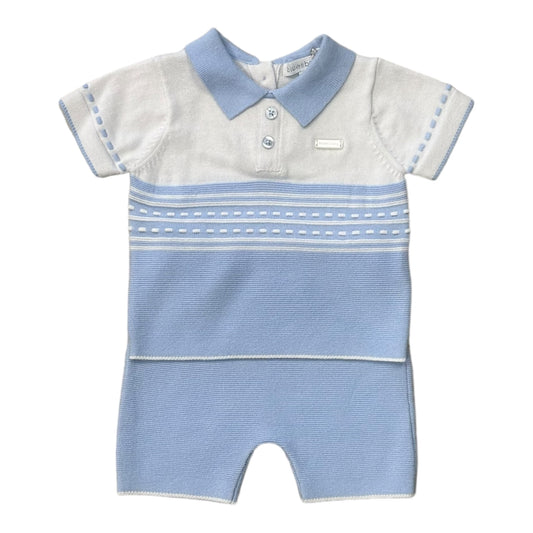 Emile et Rose - Baby boy pale blue and white romper with hat, 7299 Wilson