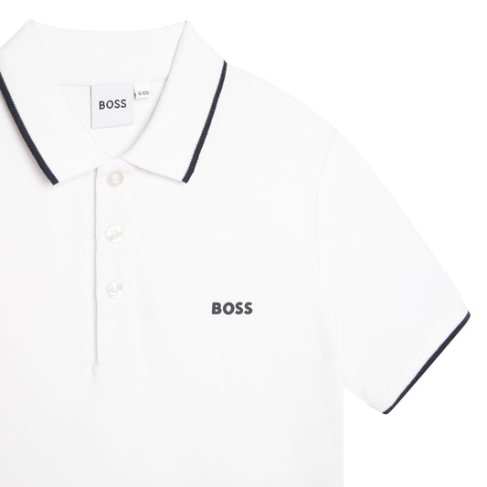 Boss - Short sleeved polo T-shirt, white (4yrs - 16yrs)