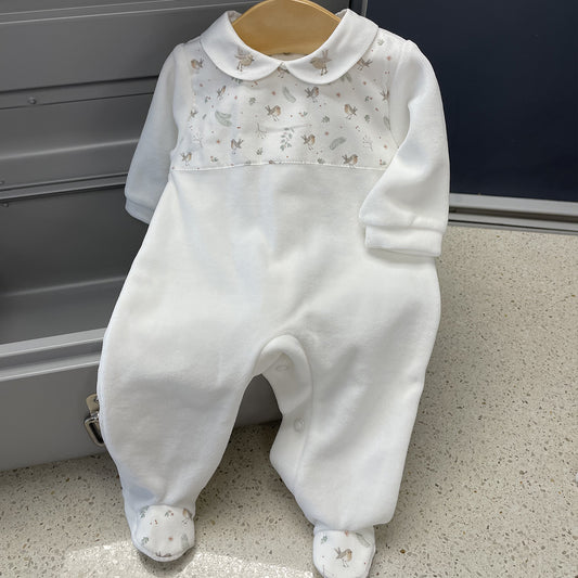 iDO - beige and cream velour all in one , Ruffle and floral detail