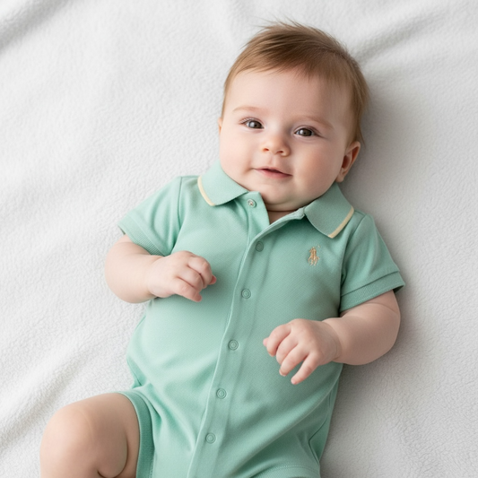 Ralph Lauren - Shortie polo romper, Pale blue, 3m - 24m