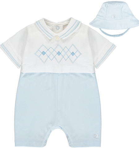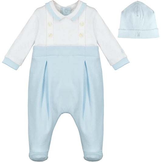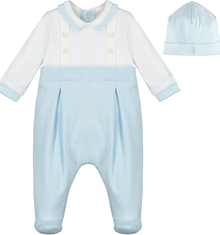 Emile et Rose - Baby boy pale blue and white romper with hat, 7299 Wilson
