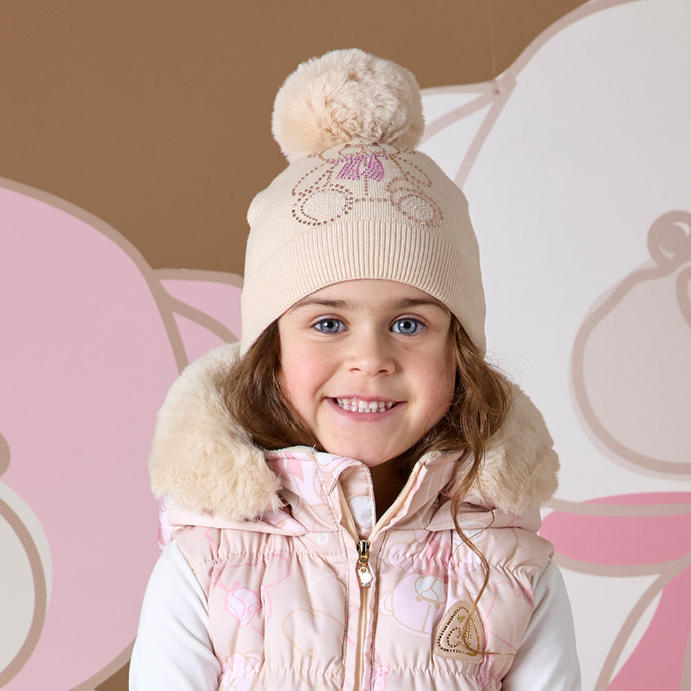 A'Dee - Knitted pom pom teddy hat, beige