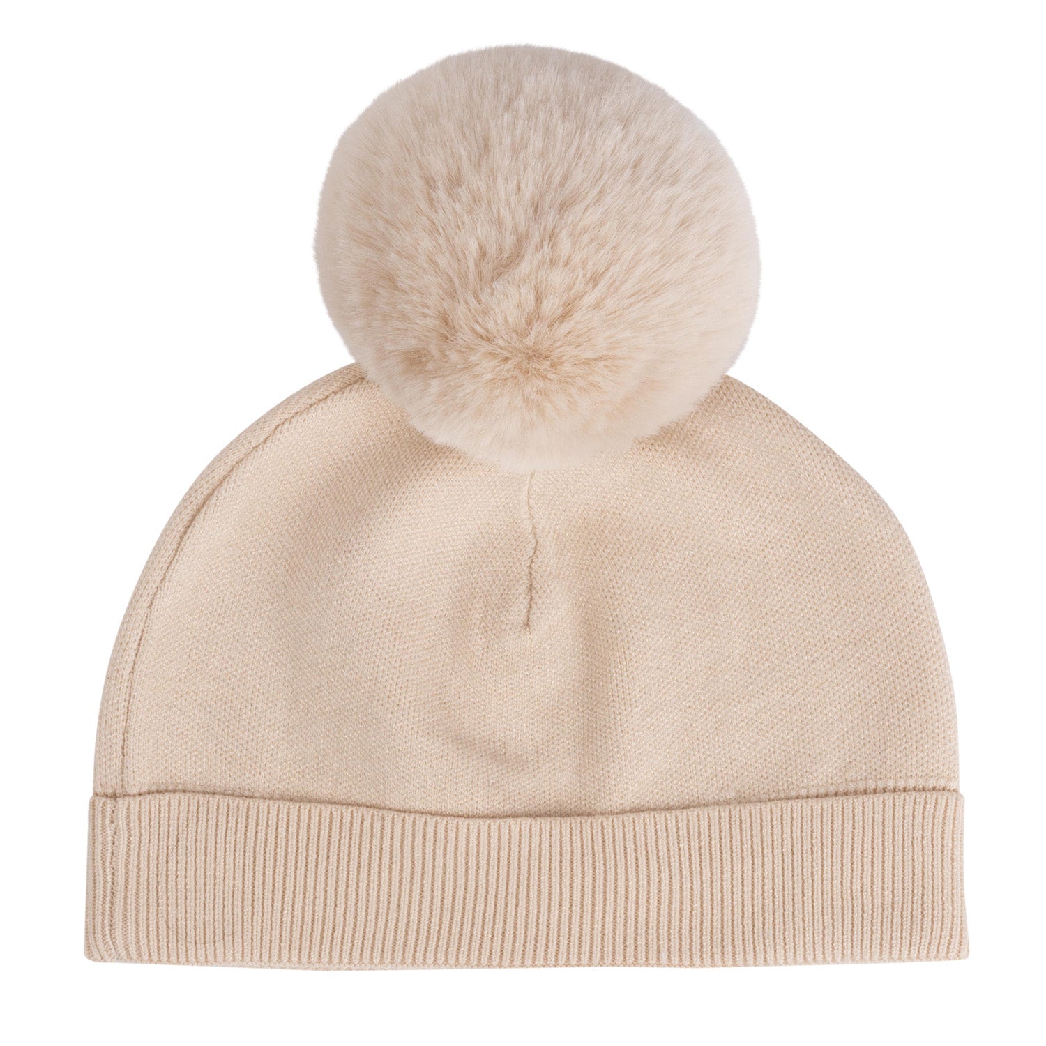 Beige knitted pom pom hat
