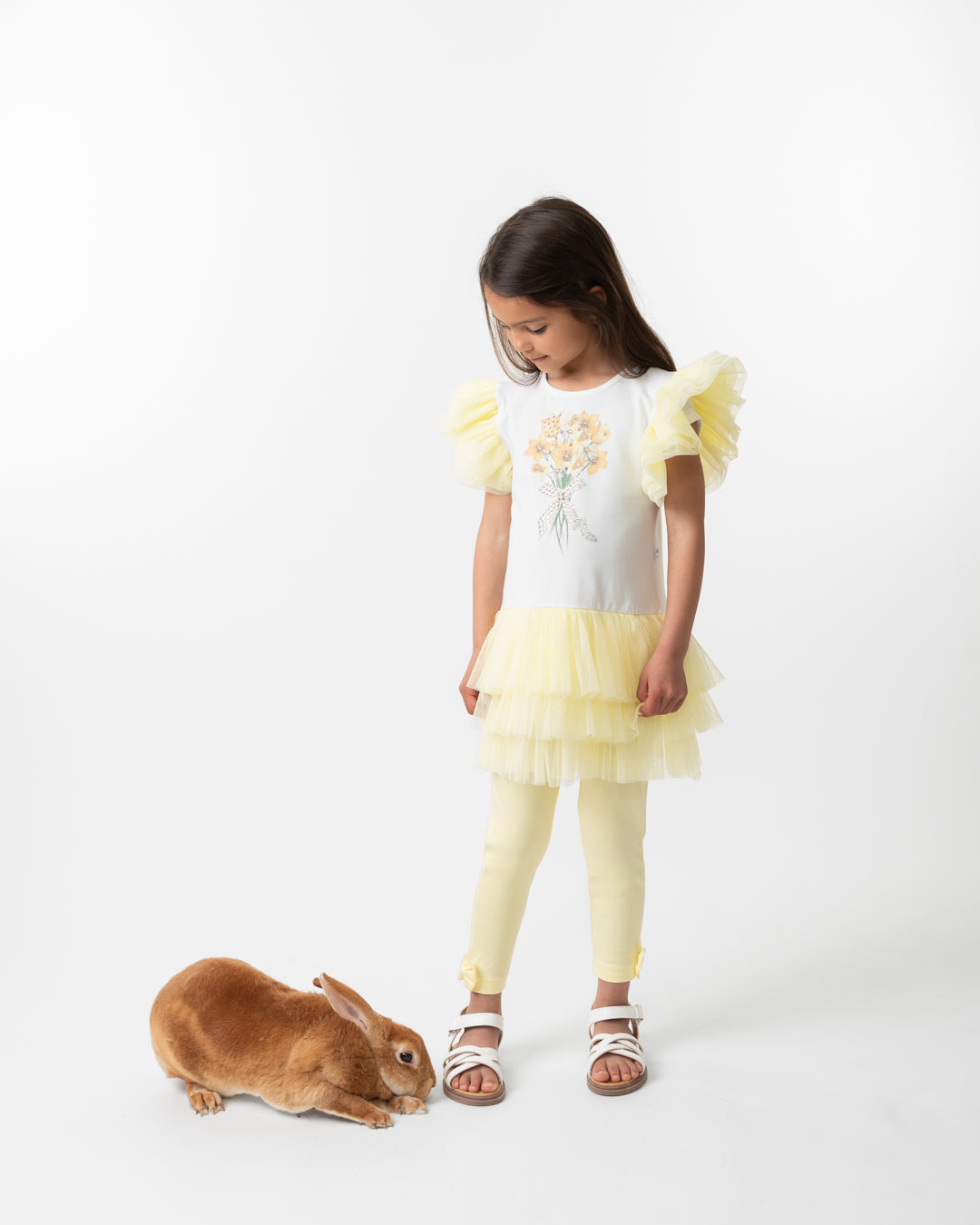 Lemon leggings with ankle bows at hem