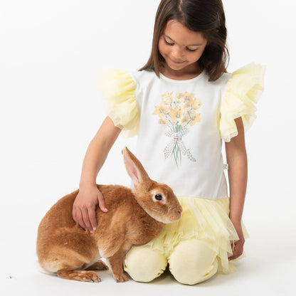 White top with daffodil front design embellished with sparkle and pearl