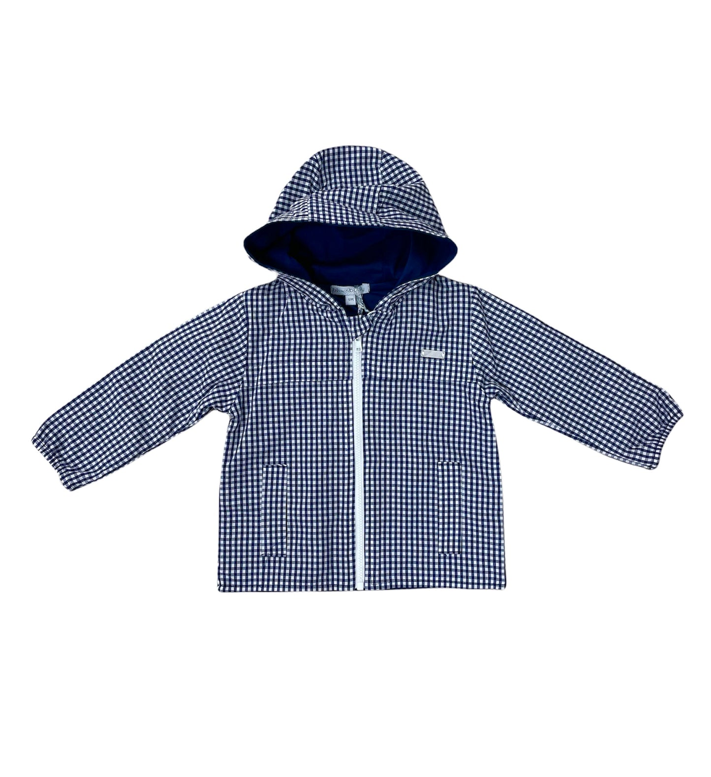 Navy gingham hooded jacket