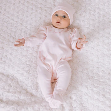 Emile et Rose - Light pink all in one with hat, floral embroidery detail