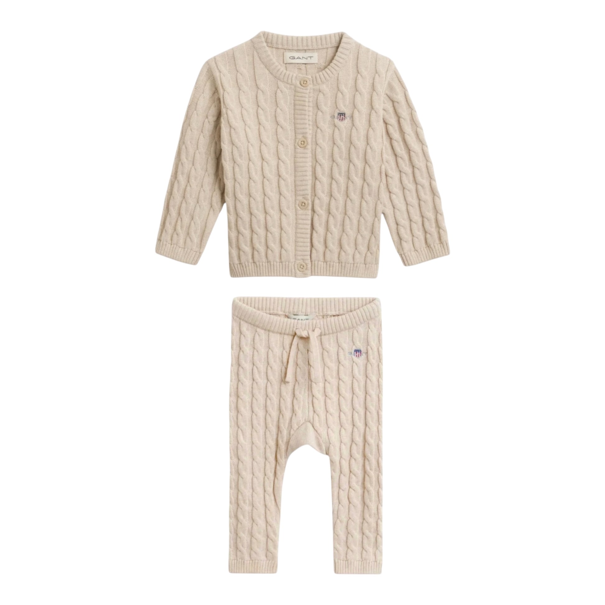 Gant - 2 piece cable knit outfit, top and bottoms, beige